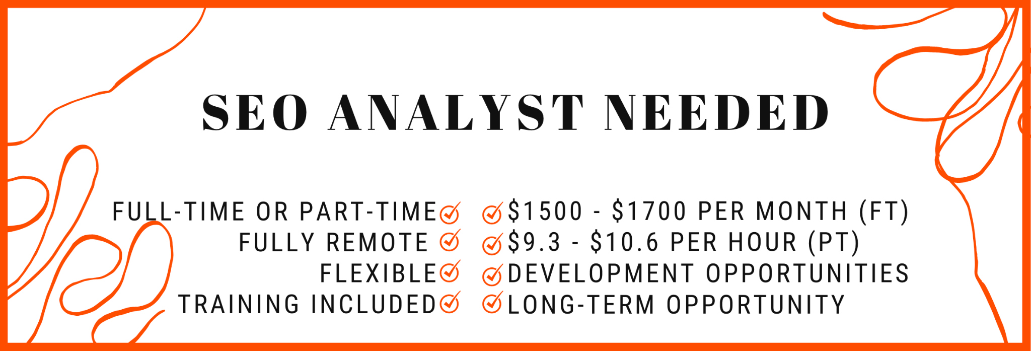 Needless to say that our next SEO Analyst has a huge impact on our clients' businesses. The ideal candidate is extremely organized, hard-working, enthusiastic and a real problem solver when it comes to research, SEO strategy and analytics.