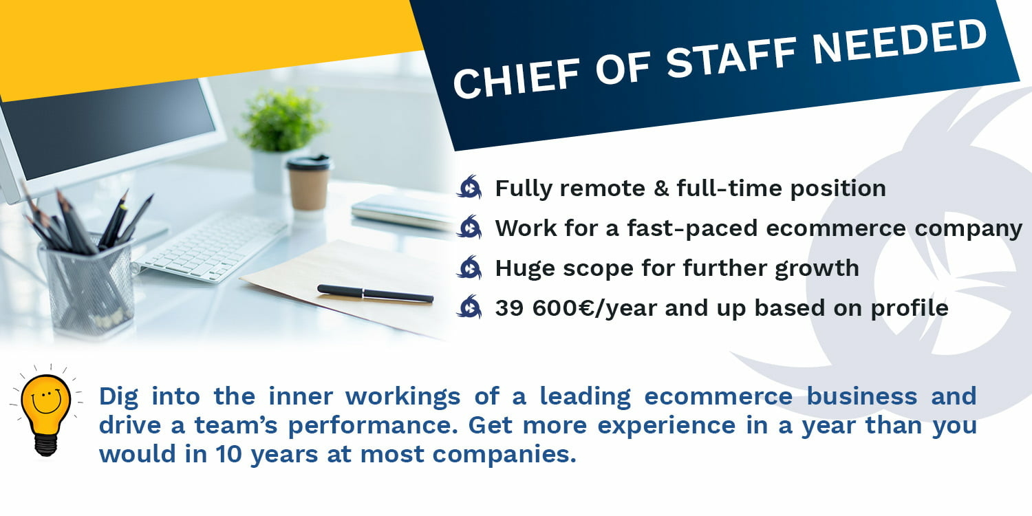 You will report directly to the CEO and be included in the executive team. You will be included and privy to everything going on in the fast-paced ecommerce business. In addition to your hiring and team-performance duties, the goal is that you can progressively be entrusted with larger business responsibilities.